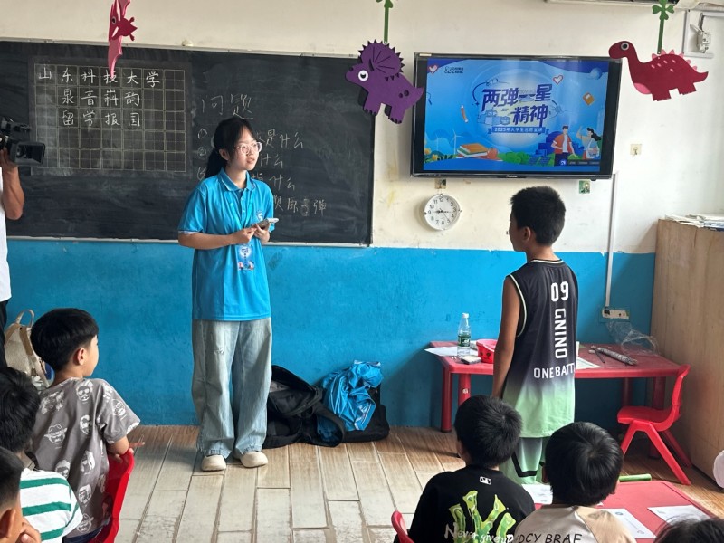 为传承弘扬“两弹一星”精神,推动红色基因融入基层,2025年8月4日至8月8日,山东科技大学“泉音嵙韵”志愿宣讲团以及“禾木耕新,绿脉郯行”实践团,在山东省临沂市郯城县归昌乡党委政府及省派第一书记张洪宾老师的支持下,开展为期五天的实践宣讲活动。团队通过党课宣讲、乡村晚会、红领巾小课堂等形式,让“两弹一星”精神在乡村落地生根,搭建起连接老一代与新一代的精神桥梁。